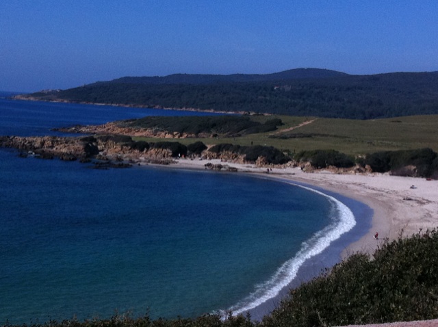 Point de Rendez-vous : A la Parata (Iles Sanguinaires), après l’embranchement allant vers Capo en voiture, juste avant les Tennis, le chemin part de ce point pour arriver au petit Capo di Feno, où nous avons pu pique niquer.